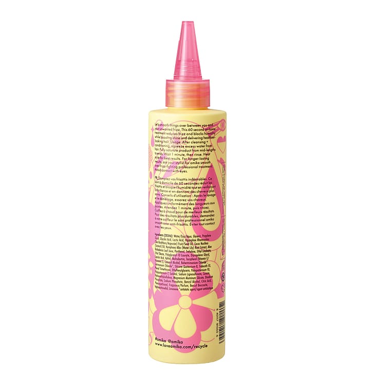 Smooth Over Frizz-fighting Treatment on 60 sekunnin käsittely, joka tasoittaa hiuksen pintakerrosta ja suojaa hiuksia pörröisyydeltä ja ilmankosteudelta. Käsittely vähentää välittömästi pörröisyyttä 73% jopa 72 tunnin ajan ja tekee hiuksista pehmeämmät, kiiltävämmät ja helpommin käsiteltävät. Tuotteen sisältämä glykolihappo auttaa muodostamaan suojakerroksen, joka sulkee ja tasoittaa hiuksen pintaa ja luo sateenvarjomaisen efektin vähentäen pörröisyyttä. Vesililjauute auttaa taltuttamaan pörröisyyttä ja parantamaan hiusten käsiteltävyyttä. Tyrni sisältää runsaasti C- ja A-vitamiinia, omega-7-rasvahappoja ja antioksidantteja. Sopii kaikille hiustyypeille, joista halutaan poistaa ei-toivottua pörröisyyttä. Se on turvallinen värjätyille hiuksille.