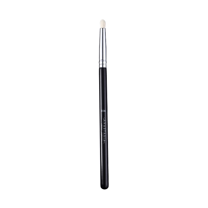 Anastasia Beverly Hills A14 Pro Brush on pieni, pyöreä sivellin jäykillä harjaksilla, joka sopii ihanteellisesti luomivärin tarkkaan levittämiseen.