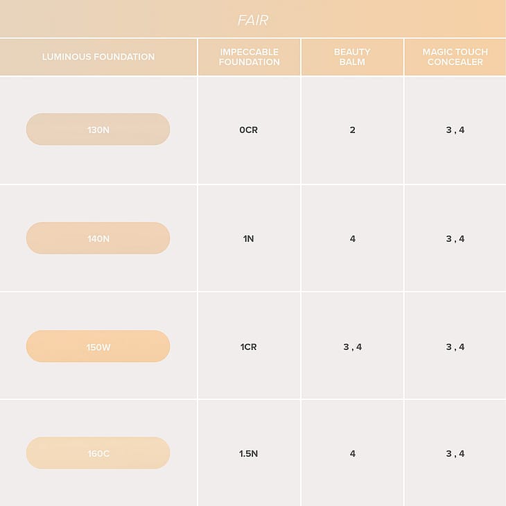 130N – Erittäin vaalea iho, jossa on neutraali, lämmin pohjasävy