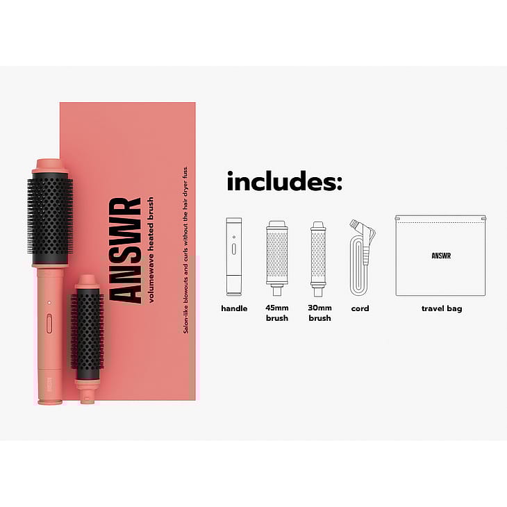 Aika lisätä volyymiä! ANSWR:n Volumewave Heated Brush on täydellinen tapa päästä eroon latteista hiuksista joutumatta näkemään hiustenkuivaajan sekä kihartimen käyttämisen vaivaa. Tämän lämpöharjan avulla saat luotua hiuksiisi maksimaalista tuuheutta, kimmoisuutta ja kiharoita ilman pörröisyyttä.