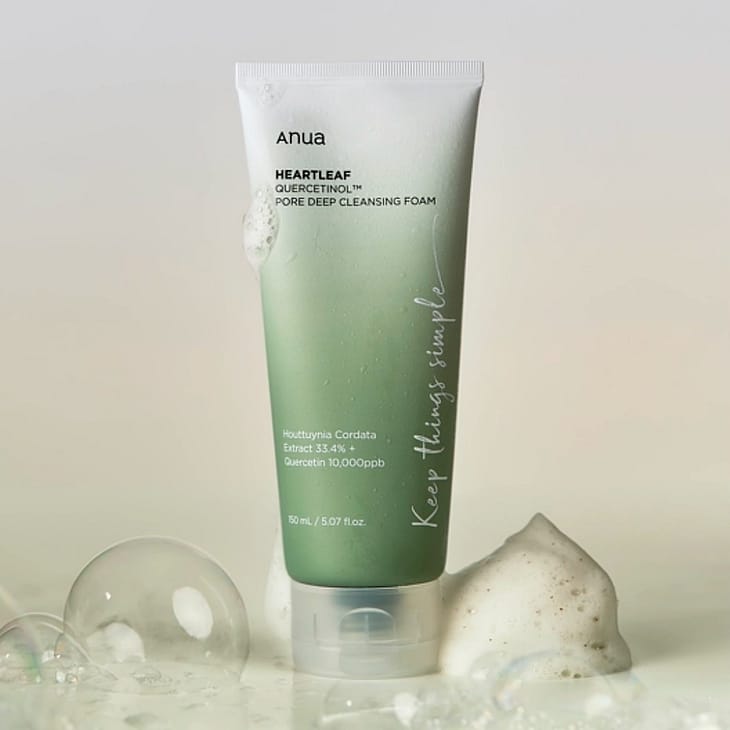Anua Heartleaf Quercetinol Pore Deep Cleansing Foam on ylellinen kasvojen puhdistusvaahto, joka puhdistaa ihon perusteellisesti mutta hellävaraisesti. Tämä miedosti mutta tehokkaasti puhdistava vaahto on rikastettu sydänlehtiuutteella, joka tunnetaan rauhoittavista ja hoitavista ominaisuuksistaan, sekä quercetinolilla, joka auttaa ylläpitämään ihon terveyttä ja elinvoimaa. Ainesosat yhdessä poistavat likaa, ylimääräistä rasvaa ja epäpuhtauksia, samalla kun ne hoitavat ja suojaavat ihoa. Käytön jälkeen iho ei tunnu vain puhtaalta, vaan myös raikkaalta, pehmeältä ja kosteutetulta. Se jättää iholle kirkkaan ja terveellisen hehkun, joka valmistaa ihosi täydellisesti seuraaviin ihonhoitovaiheisiin. Käytä sitä päivittäin saadaksesi kirkkaan, puhtaan ja terveellisen ihon, joka tuntuu uudelta.