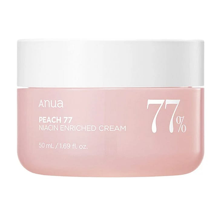Anua’s Peach 77% Niacin Enriched Cream on ylellinen kasvovoide, joka tarjoaa ihollesi täydellisen yhdistelmän syvää kosteutusta ja säihkeästi terveellistä hehkua. Tämä runsas mutta kevyt koostumus on luotu parantamaan ihon luonnollista kirkkauden tunnetta ja edistämään raikasta, elinvoimaista ihonsävyä. Sen samettinen koostumus levittyy helposti iholle ja jättää sen kosteutetuksi ja virkistyneeksi ilman raskasta tai rasvaista tunnetta.