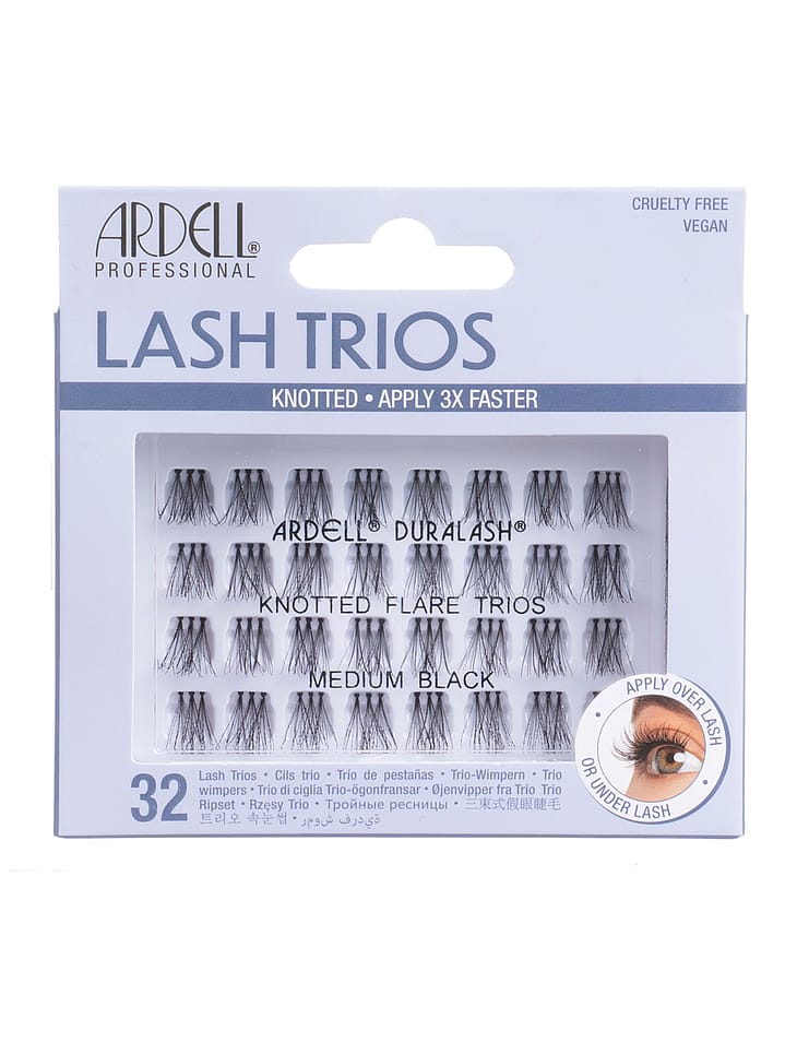 Kolminkertainen ripsi kolme kertaa nopeammin! Luo oma tyylisi Ardell Knotted Trio Lash -irtoripsillä. Kolme yksittäistä ripseä yhdessä ripsinauhassa nopeampaan yksittäisripsien kiinnitykseen. Saatavana pituudet Short, Medium & Long. Kiinnitetään suoraan ripsilinjaan tai yhdistetään tavallisiin irtoripsiisi tuuheuden lisäämiseksi. Täysin vegaaninen