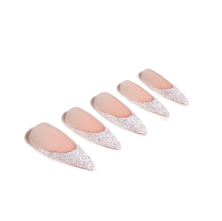 Flash & Sparkle Electric Connection - Stiletto - Ranskalainen manikyyri lisäglitterillä ja valkoisilla kärjillä, jotka kimaltelevat kuin lumi auringossa.