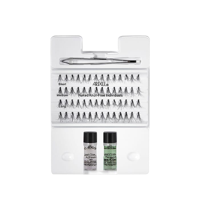 • Mukana läpinäkyvä vedenkestävä Ardell LashTite -liima, Lashfree Remover ja pinsetit