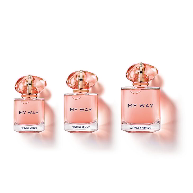 My Way Eau de Parfum Ylangin elinvoimainen, hedelmäinen energia on vangittu uuteen korallinsävyiseen pulloon, joka pursuaa valoa.