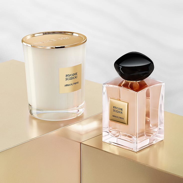 Uusi Armani/Privé-kynttilämallisto inspiroi ja tuo pakopaikan arjesta. Jokainen kynttilä herättää ainutlaatuisen tuoksunsa ansiosta omanlaisensa tunnelman. Kun kynttilät palavat, ne luovat pehmeää valoa ja tyylikkään, rauhoittavan tunnelman päivän lopuksi. Jokainen näistä tuoksuista, jotka on vangittu seitsemään tuoksukynttilään, luo oman jäljittelemättömän Armani/Privé-hetkensä. Yksi näistä hetkistä on PIVOINE SUZHOUn eteerinen herkkyys, valovoimaisten tunteiden paljous, kuohuvista hedelmäisistä tuoksunuoteista pehmeisiin ja vietteleviin myskeihin.