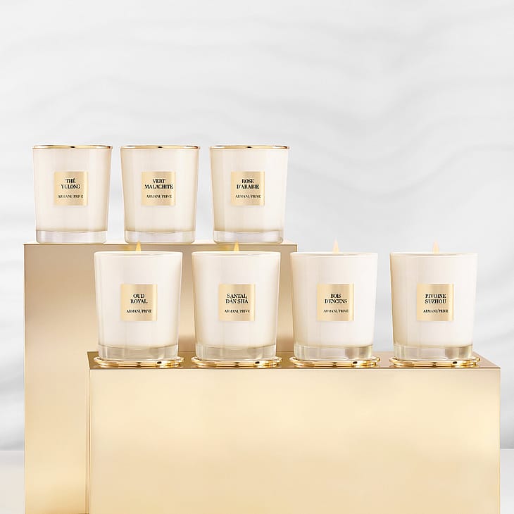 Armani/Privé-kynttilät kutsuvat tuoksurituaaliin ja intensiiviseen tuoksukokemukseen. Rituaali alkaa, kun kynttilän tyylikäs kultainen kansi poistetaan ja sydänlanka leikataan ennen kynttilän sytyttämistä. Vaha alkaa sulaa, ja huoneeseen leviää jokin Armani/Privén lumoavista tuoksuista. Kun tuoksun eri nuotit leviävät huoneeseen, kynttilän valo tehostaa tuoksun mukaansatempaavaa vaikutusta. Tämä rituaali sytyttää välittömästi ainutlaatuisen tunnelman, jonka kautta Armani/Privé-kynttilöiden käyttäjät voivat paeta arkea ja nauttia piristävästä hetkestä. Kynttilä voidaan asettaa kultaisen kannen päälle sen palaessa, jolloin sen muotoilu pääsee oikeuksiinsa. Kun kynttilää käytetään ensimmäistä kertaa, polta sitä niin pitkään, että sen pinta on muuttunut täysin nestemäiseksi, jotta pinta pysyy tasaisena. Jopa kynttilän liekin sammuttaminen kuvastaa malliston eleganssia, sillä kultainen kansi voidaan asettaa kynttilän päälle, jolloin liekki sammuu vaivattomasti. Pidä tyylikästä kantta kynttilän päällä, kun sitä ei käytetä, sillä se estää myös pölyn kerääntymisen vahaan.