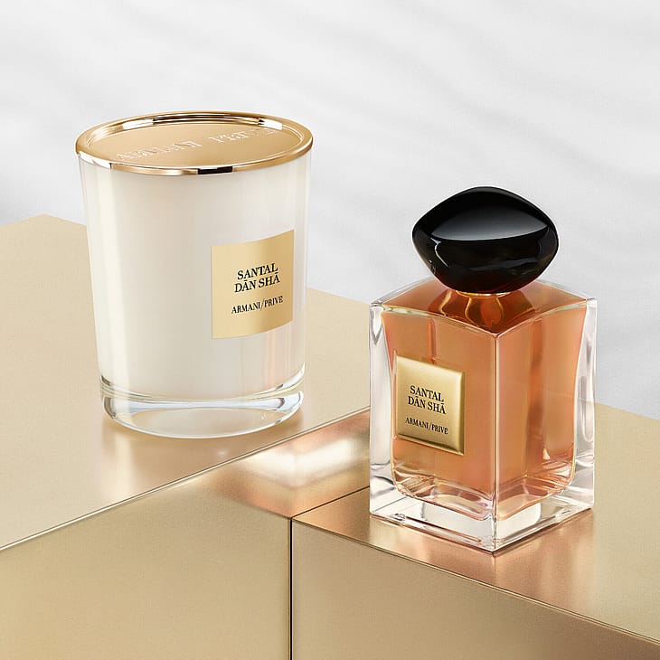 Uusi Armani/Privé-kynttilämallisto inspiroi ja tarjoaa pakopaikan arjesta. Jokainen kynttilä herättää ainutlaatuisen tuoksunsa ansiosta omanlaisensa tunnelman. Kun kynttilät palavat, ne luovat pehmeää valoa ja tyylikkään, rauhoittavan tunnelman päivän lopuksi. Jokainen näistä tuoksuista, jotka on vangittu viiteen tuoksukynttilään, luo oman jäljittelem ättömän Armani/Privé-hetkensä. Näiden hetkien joukossa on SANTAL DĀN SHĀn rauhoittavat metsäiset sävyt, jotka on suunniteltu välittämään tyyneyttä rauhallisella tuoksullaan.