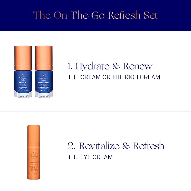 The Rich Cream: Aqua/Water/Eau, Coco-Caprylate/Caprate, Helianthus Annuus (Sunflower) Seed Oil, Squalane, Glycerin, Argania Spinosa Kernel Oil, Ethyl Oleate, Persea Gratissima (Avocado) Oil, Polyglyceryl-4 Oleate, Magnesium Sulfate, Oenothera Biennis (Evening Primrose) Oil, Panthenol, Polyglyceryl-6 Oleate, Zinc PCA, Polyhydroxystearic Acid, Butylene Glycol, Butyrospermum Parkii (Shea) Butter, Potassium Sorbate, Sodium Benzoate, Tocopherol, Sodium Hyaluronate, Hydrolyzed Rice Protein, Maltodextrin, Citric Acid, Camellia Sinensis Leaf Extract, Hydrogenated Lecithin, Tocopheryl Acetate, Xanthan Gum, Alanyl Glutamine, Arginine, Oligopeptide-177, Phenylalanine, Sisymbrium Irio Seed Oil, Sodium Chloride, Dextran, Palmitoyl Tripeptide-8. The Cream: Aqua/Water/Eau, Caprylic/Capric Triglyceride, Pentylene Glycol, Propylene Glycol, Glycerin, Hydrogenated Phosphatidylcholine, Sorbitol, Tocopheryl Acetate, Butylene Glycol, Butyrospermum Parkii (Shea) Butter, Xanthan Gum, Panthenol, Sodium Carbomer, Alcohol, Aloe Barbadensis Leaf Juice, Hydrolyzed Rice Protein, Retinyl Palmitate, Helianthus Annuus (Sunflower) Seed Oil, Squalane, Phenoxyethanol, Cholesterol, Hydrogenated Lecithin, Ascorbyl Palmitate, Carbomer, Ceramide NP, Lecithin, Glycine Soja (Soybean) Protein, Superoxide Dismutase, Sodium Hydroxide, Alanyl Glutamine, Arginine, Ceramide NG, Citric Acid, Dextran, Glycine, Lysine, Oleic Acid, Palmitic Acid, Palmitoyl Tripeptide-8, Phenylalanine, Proline, Scenedesmus Rubescens Extract, Ascorbic Acid, Ethylhexylglycerin, Sodium Benzoate, Tocopherol, Brassica Alba Seed Extract, Disodium EDTA, Oligopeptide-177, Sodium Ascorbate, Sodium Dextran Sulfate, Potassium Sorbate. The Eye Cream: Aqua/Water/Eau, Glycerin, Coco-Caprylate/Caprate, Panthenol, Ethyl Oleate, Ethylhexyl Polyhydroxystearate, Squalane, Glyceryl Stearate Citrate, Hydrogenated Vegetable Glycerides, Niacinamide, Ascorbyl Tetraisopalmitate, Sodium Stearoyl Glutamate, Polyglyceryl-3 Stearate, Oleic Acid, Cocos Nucifera (Coconut) Oil, Silica, Simmondsia Chinensis (Jojoba) Seed Oil, Hydrogenated Lecithin, Undaria Pinnatifida Extract, Xanthan Gum, Potassium Sorbate, Citric Acid, Sodium Benzoate, Terminalia Arjuna Extract, Centella Asiatica Flower/Leaf/Stem Extract, Hydrolyzed Rice Protein, Maltodextrin, Sodium Phytate, Lecithin, Corallina Officinalis Extract, Camellia Sinensis Leaf Extract, Tocopheryl Acetate, Tocopherol, Alanyl Glutamine, Arginine, Oligopeptide-177, Sodium Chloride, Phenylalanine, Sisymbrium Irio Seed Oil.