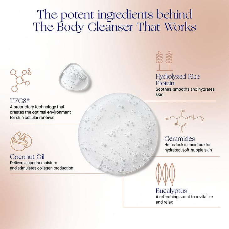 Täydentävä vartalopesuaine puhdistaa hellävaraisesti, kosteuttaa ja pehmentää silkkisen sileää ihoa. Eukalyptuksen virkistävä tuoksu elvyttää ja rentouttaa. Tehostettu TFC8®