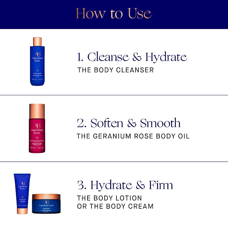 Nopeasti imeytyvä öljy, joka tarjoaa intensiivistä kosteutta, ravintoa, kiinteyttä ja sileyttä sekä näkyviä tuloksia. Sisältää luonnollista geraniumia ja ruusua, jotka auttavat rentoutumaan ja rauhoittumaan. Tehostettu TFC8®:lla.