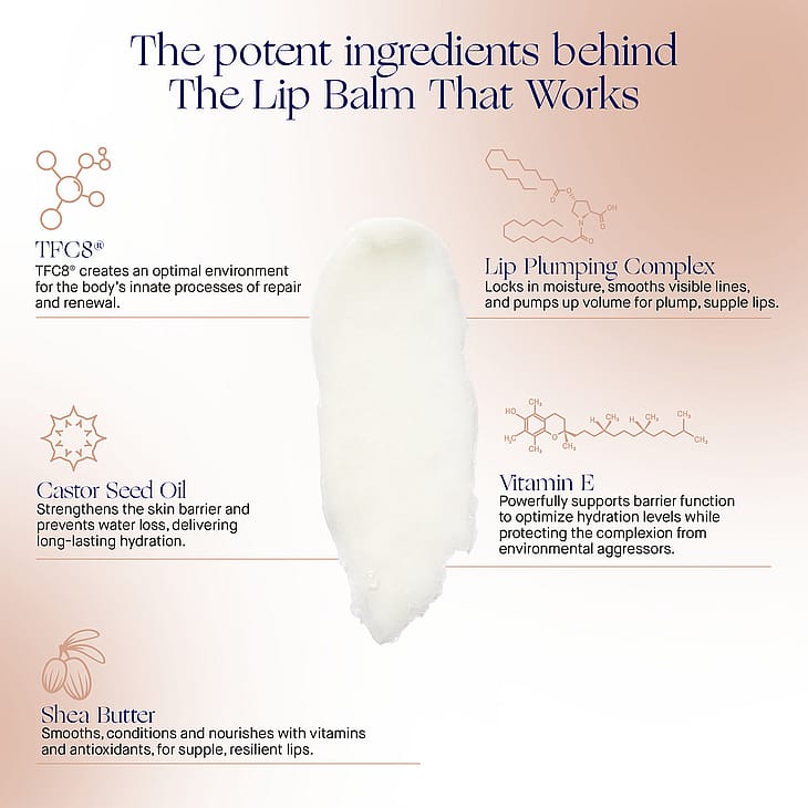 The Lip Balm on huulibalsami, joka kosteuttaa, ravitsee ja uudistaa huulten ihoa. Se sisältää hoitavan kasviperäisen yhdisteen, joka rauhoittaa ja suojaa ympäristön haittavaikutuksilta. Tuote vähentää kuivuutta sekä kiristystä välittömästi ja tuo täyteläisen efektin huulille. Se sisältää Augustinus Baderin patentoitua, ihon korjaantumisprosessia vahvistavaa TFC8®-yhdistettä. Ravitseva ja kosteuttava huulibalsami Kasviuutteet suojaavat ja rauhoittavat Täyteläinen efekti huulilla