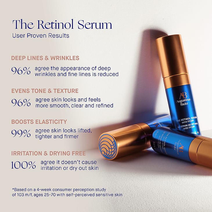 Kun olet puhdistanut ja valmistellut ihosi Augustinus Bader -tuotteilla, hiero Retinol Serumia hellävaraisesti haluamasi määrä kasvoille, kaulalle ja kaula-aukon alueelle