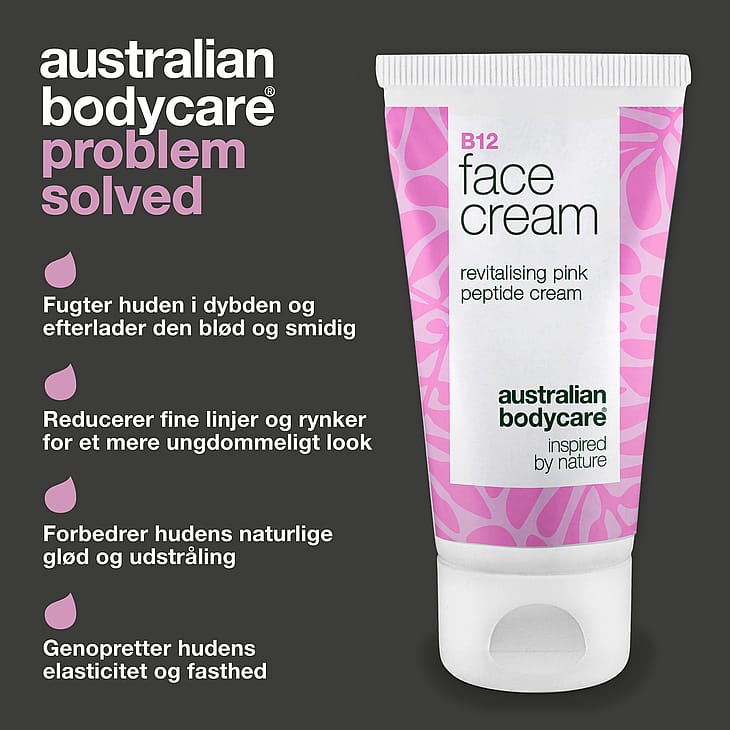 Parhaan tuloksen saavuttamiseksi suosittelemme, että käytät B12 Face Cream -kasvovoidetta yhdessä muiden Australian Bodycaren ikääntymistä ehkäisevien tuotteiden, kuten anti-aging seerumimme, kanssa tehostamaan vaikutusta.