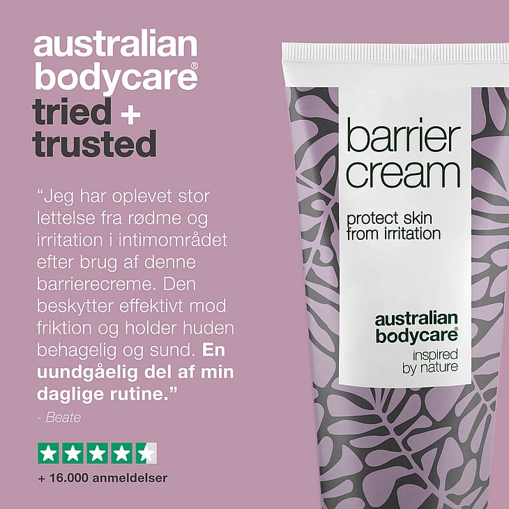 Barrier Cream suojaa ja hoitaa herkkää ihoa intiimialueella ärsytystä ja hankausta vastaan.
