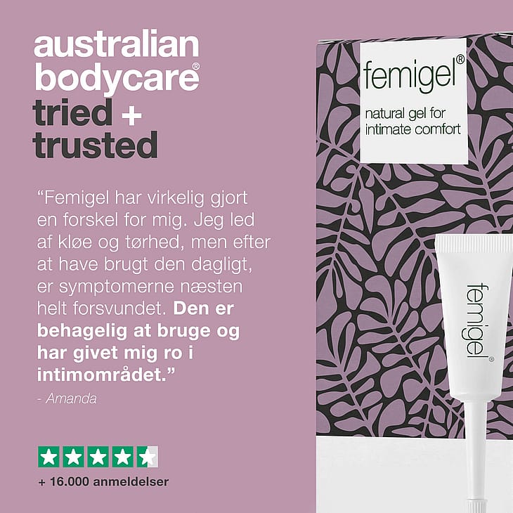 Kun intiimiongelmat ovat vähentyneet, voit estää niiden toistumisen käyttämällä saman sarjan Femi Dailyä. Suosittelemme myös, että peset intiimialueen Australian Bodycaren Intim Washilla vähentääksesi ei-toivottua hajua, kutinaa ja muuta ärsytystä intiimialueella.