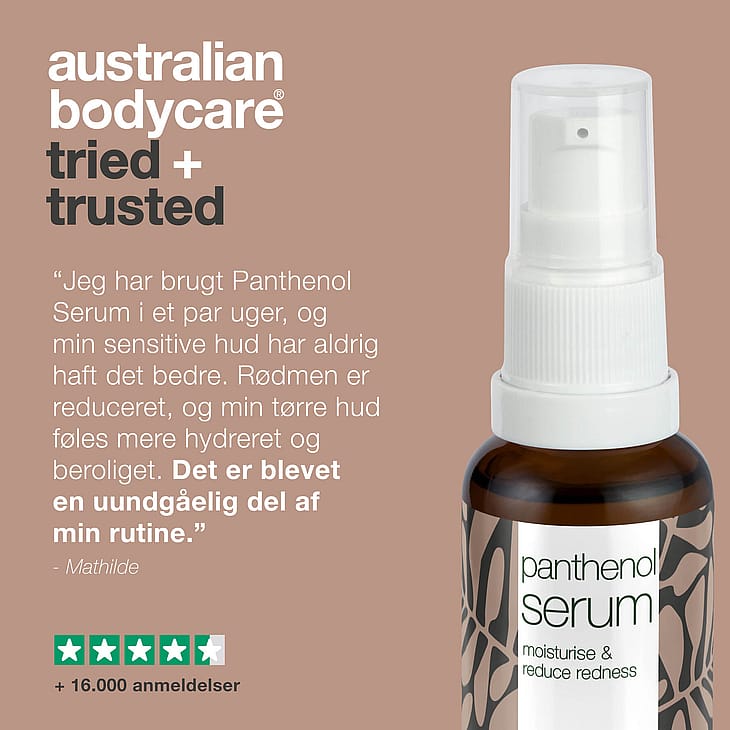 Panthenol Serum koostuu useista aktiivisista ja tehokkaista ainesosista ja sitä voidaan käyttää kutinaa, punoitusta, kuivuutta ja epätasaista ihon sävyä vastaan.