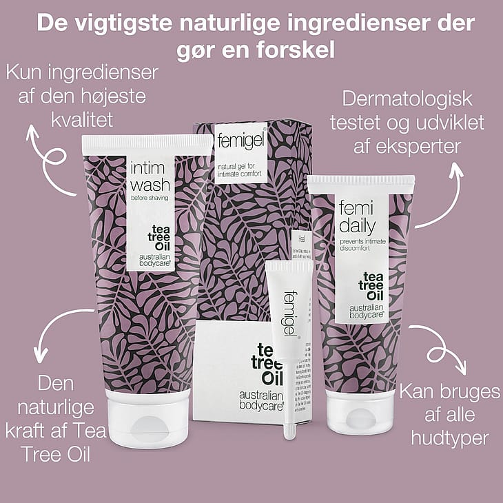 Intim Wash, Femigel ja Femi Daily sisältävät luonnonvaroja, jotka auttavat torjumaan intiimiongelmia.