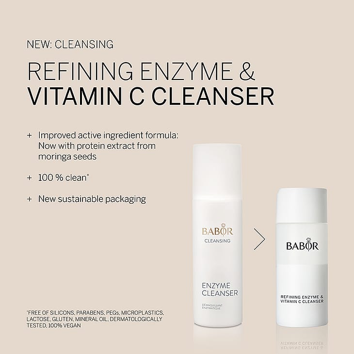 Entsymaattinen puhdistusjauhe rikastettuna C-vitamiinilla, joka toimii 2-in-1 puhdistusaineena ja entsyymikuorintana. Hellävarainen syväpuhdistus kuorivalla vaikutuksella poistaa kuolleet ihosolut, vähentää talin erittymistä ja lisää ihon kykyä imeä myöhempiä ihonhoitotuotteita paljon paremmin. Harmaankalpea iho häviää ja ihon uusiutuminen stimuloituu. Moringan siementen proteiiniuute suojaa ihoa negatiivisia ympäristövaikutuksia ja stressiä vastaan, ja iho saa raikkaan hehkun C-vitamiiniannoksensa ansiosta. Sopii kaikille ihotyypeille.