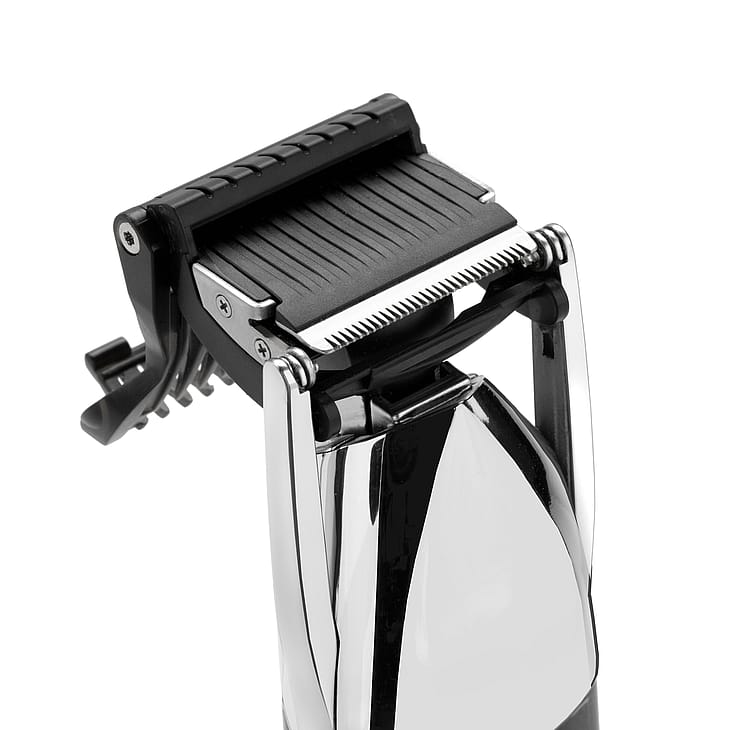 Ammattitason partatrimmeri, jossa vankka metallikädensija ja erinomainen valmistuslaatu, suunniteltu vaivattomaan trimmaukseen tasaisella lopputuloksella.
