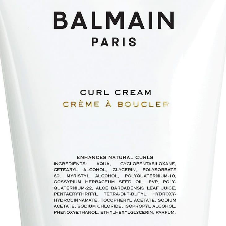 Balmain Curl Cream on kevyt koostumus, joka aktivoi, kosteuttaa ja määrittelee kiharat, rikastettu silkkiproteiinilla, joka sulkee kosteuden hiukseen ja suojaa kosteudelta ja UV-säteilyltä, jättäen kiharat pehmeiksi, joustaviksi ja kauniisti muotoilluiksi koko päivän.