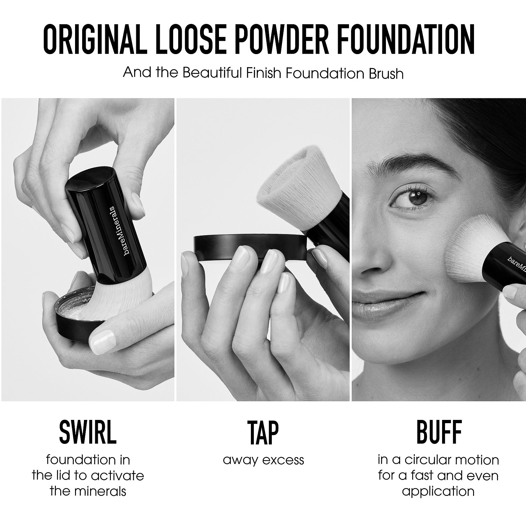 Tutustu mineraalimeikin hyötyihin ja paljasta paras säteilevä ihosi tällä välttämättömällä aloituspakkauksella, joka sisältää minikokoja ikonisesta ORIGINAL Loose Mineral Foundation -meikkivoiteestamme haluamassasi sävyssä sekä meikkisiveltimen, tasoittavan primerin ja talkittoman viimeistelypuuterin.