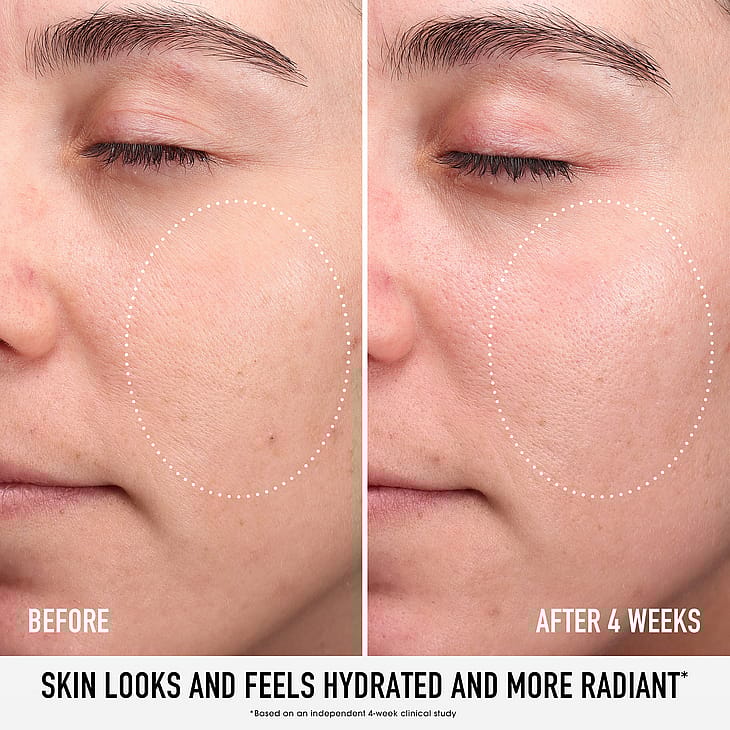 - Kliinisesti todistettu parantavan ihon kosteutta 24 tunnin ajan ja lisäävän hehkua merkittävästi neljässä viikossa.*