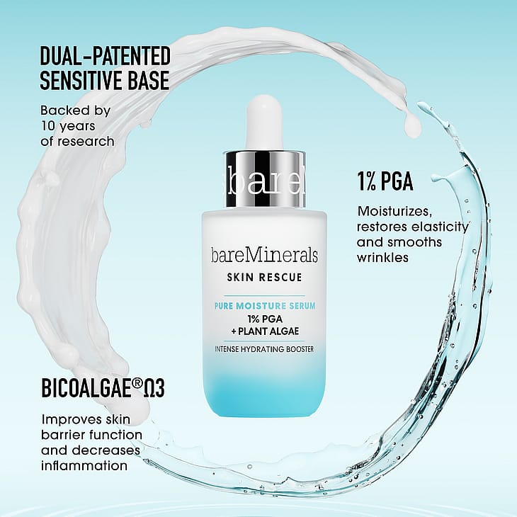 Skin Rescue Pure Moisture -seerumin patentoitu resepti sopii herkälle iholle, ja se sisältää 1 %:n pitkäkestoista kosteutusta luovaa PGA:ta ja kasvilevää. Auttaa korjaamaan ihon suojatoimintoja ja vähentämään näkyvästi hienoja juonteita ja ryppyjä luoden kosteutetun ja säteilevän ihon. Saat parhaan tuloksen kerrostamalla sitä suosikkikosteusvoiteesi kanssa.