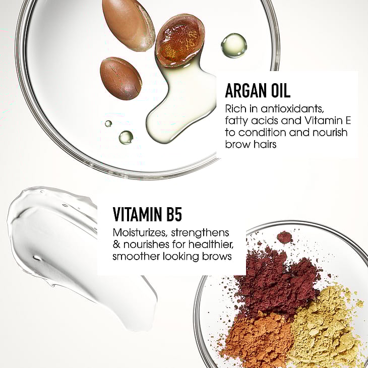Vegaaninen kulmakarvageeli, johon on lisätty kasvipohjaista seerumia, joka sävyttää, muotoilee ja erottelee, samalla kun se tekee kulmakarvoista selvästi täyteläisemmät ajan mittaan. Intuitiivisesti taitettu applikaattori geeliytyy kulmakarvojen läpi luoden luonnollisen ilmeen ja täyteläisyyden. Honey, Chestnut ja Coffee: Mineraalipigmentit jäljittelevät omaa kulmaväriäsi ja antavat luonnollisen näköisen, kerrostettavan sävyn. Clear: Sopii päivä- tai yökäyttöön. Joustavan pysyvyyden ilman jäykkyyttä tai hilseilyä. Sisältää kasvipohjaista seerumia, jonka tehona on Red Clover Flower ja peptidit, jotka vahvistavat tehokkaasti. Vahvistaa ja kasvattaa todistetusti kulmakarvoja, jolloin ne ovat ajan mittaan näkyvästi täyteläisemmät.