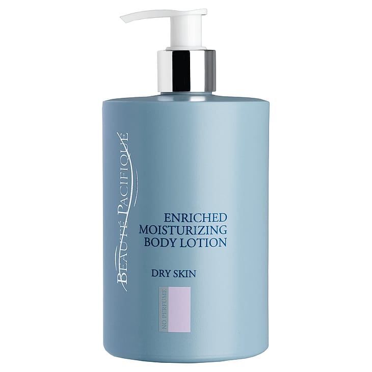 Enriched Moisturizing Body Lotionilla on intensiivisesti kosteuttavia ominaisuuksia vartalon kuivan, ärtyneen ja auringon vaurioittaman ihon hoitoon. Sisältää runsaasti skvalaania ja A-vitamiinia, joka hoitaa tehokkaasti kuivuutta, pehmentää ja vahvistaa ihoa. Ilman hajusteita. 500 ml.