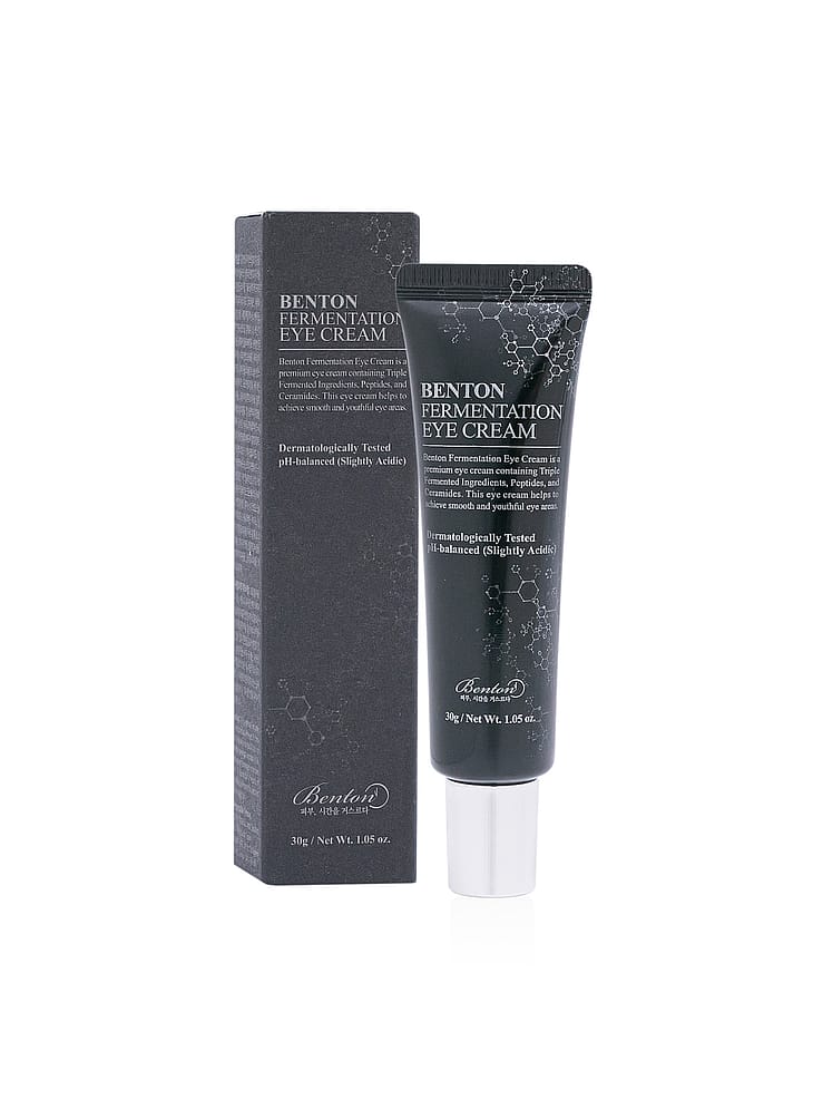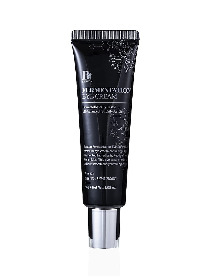 Benton Fermentation Eye Cream on tehokas, mutta ihoystävällinen silmänympärysvoide, joka perustuu korkeaan galaktomyces-pitoisuuteen - yhteen tunnetuimmista anti-aging-ainesosista aasialaisessa ihonhoidossa. Galaktomyces on riisin fermentoinnin sivutuote, jolla on lukuisia positiivisia vaikutuksia iholle. Se pehmentää, vahvistaa ja korjaa ihoa samalla kun se on erittäin hellävarainen, mikä tekee siitä sopivan myös herkälle iholle. Tärkeimmät ainesosat ovat: