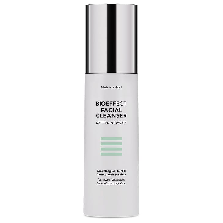 BIOEFFECT Facial Cleanser on ravitseva ja skvalaania sisältävä kasvojenpuhdistus, jonka tehokas mutta hellävarainen koostumus sopii kaikille ihotyypeille. Se poistaa meikin, epäpuhtaudet, aurinkosuojan, rasvan ja saasteet – ihon suojamuuria vahingoittamatta. Ihosta tulee puhdas, kosteutettu ja optimaalisesti valmis seuraaville ihonhoitotuotteille. Puhdistustuotteen miellyttävä, geelimäisestä maitomaiseksi muuntuva koostumus antaa hoidetun ja sileän ihon, joka ei tunnu kireältä tai tahmealta. Koostumus sisältää yhdistelmän ravitsevia ja puhdistavia ainesosia, kuten skvalaania ja ohransiemenuutetta.