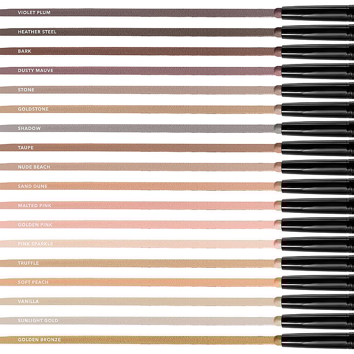 Cyclopentasiloxane, Trimethylsiloxysilicate, Polyethylene, Lauroyl Lysine, Ozokerite, Octyldodecanol, Synthetic Beeswax, Ascorbyl Palmitate, Tocopherol, Lecithin, Disteardimonium Hectorite, Propylene Carbonate, Calcium Aluminum Borosilicate, Synthetic Fluorphlogopite, Calcium Sodium Borosilicate, Citric Acid, Silica, Tin Oxide, [+/- Mica, Titanium Dioxide (Ci 77891), Iron Oxides (Ci 77492), Iron Oxides (Ci 77491), Iron Oxides (Ci 77499), Manganese Violet (Ci 77742), Yellow 5 Lake (Ci 19140), Chromium Oxide Greens (Ci 77288), Chromium Hydroxide Green (Ci 77289), Carmine (Ci 75470), Bismuth Oxychloride (Ci 77163), Ferric Ammonium Ferrocyanide (Ci 77510), Aluminum Powder (Ci 77000), Blue 1 Lake (Ci 42090), Ultramarines (Ci 77007), Ferric Ferrocyanide (Ci 77510)]