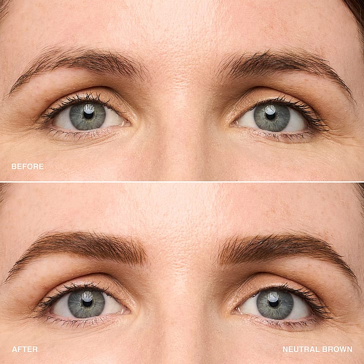 Käytä harjaa harjataksesi karvat ylöspäin, jotta näet, mitkä alueet tarvitsevat täyttämistä tai määrittelyä. Käytä sitten kulmikasta päätä luodaksesi ohuita, karvaa muistuttavia vetoja, jotka jäljittelevät luonnollisen kulmakarvasi ulkonäköä. Harjaa spoolie-harjalla värin levittämiseksi. Käytä sitä esimerkiksi yhdessä Natural Brow Shaperin kanssa.