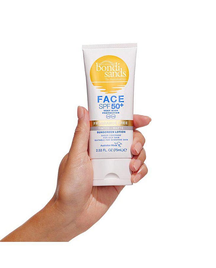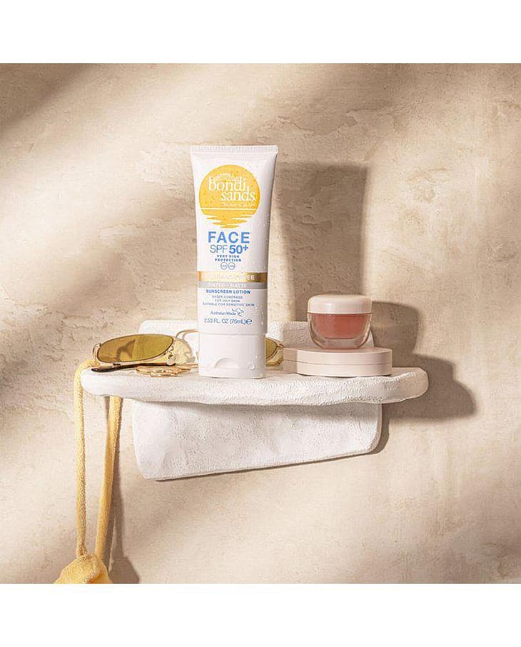 Pidä ihosi suojattuna auringon säteiltä joka päivä Bondi Sands SPF 50+ Matte Tinted Face Lotion -aurinkosuojaemulsiolla, joka on hajusteeton ja antaa sekä UVA- että UVB-suojan. Sävytetty koostumus ei jätä rasvaista tunnetta, antaa kevyen peittävyyden ja sopii käytettäväksi sellaisenaan tai meikin alla. Sopii erinomaisesti rasvoittuvalle iholle.