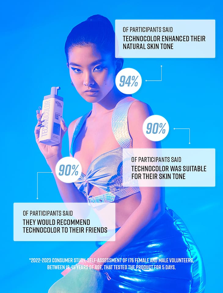 Bondi Sands Sapphire Technocolor sisältää Dermachromatic™ Colour -teknologian. Koostumus on kehitetty tieteellisin ja kliinisin testein. Täydellinen yhdistelmä aktiiviainesosia, kosteutusta ja optimaalista värisävyä antaa täydellisen, pitkäkestoisen ja kauniin päivetyksen.