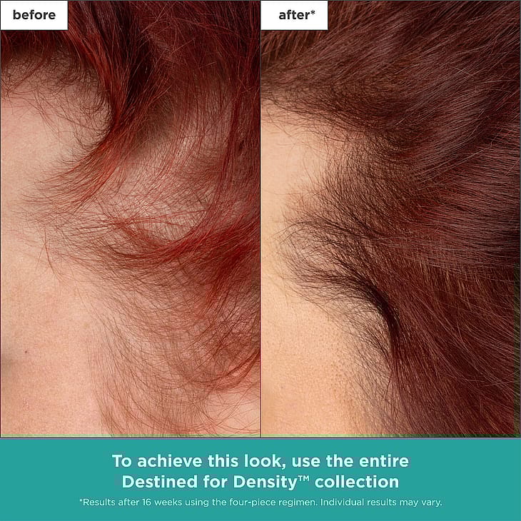 Destined for Density™ Caffeine + Biotin Peptide Density -shampoo yhdistää tieteellisesti todistettuja ainesosia, kuten kuparipeptidejä ja sinkkiä, sekä hiusten kasvulle välttämättömiä vitamiineja, kuten biotiinia ja E-vitamiinia, auttaen hiuksia näyttämään paksummilta. Tämä shampoo sisältää myös kofeiinia, vihreää kahviöljyä ja ubikinonia, jotka tehostavat hiuspohjan ja hiusten tyven ravinteikasta mikroverenkiertoa tehden hiuksista tuuheamman ja terveemmän näköiset. Tuote on vegaaninen.