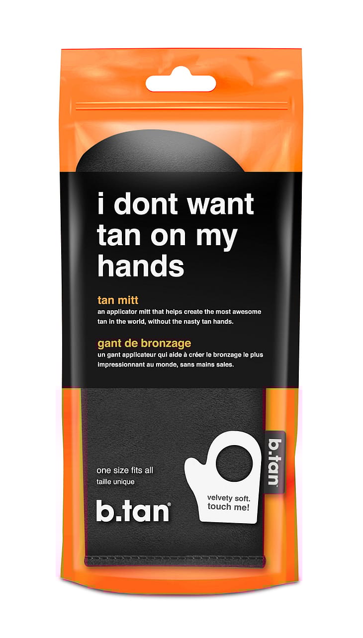 I Don't Want Tan On My Hands Tan Mitt on käsine, joka auttaa luomaan tasaisen ja kauniin rusketuksen. Käytä käsinettä levittäessäsi itseruskettavia tuotteita, jotta vältät käsien tahraantumisen. Käsine on pestävä ja uudelleenkäytettävä. Anna kuivua vapaasti.