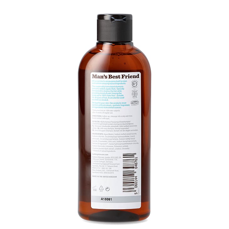 Bulldog Anti-Dandruff Shampoo on hilsettä hoitava shampoo, jossa on luonnollisia ainesosia. Sisältää jujube-kuorta, joka imee liiallisen rasvan päänahasta, sillä on rauhoittava vaikutus ja se estää hilsettä. Tuote on vegaaninen ja sen täysin luonnollisessa tuoksussa on tuoreen sitruunan, bergamotin, piparmintun ja laventelin vivahteita. Erinomainen shampoo miehille, jotka haluavat hilseettömät hiukset.