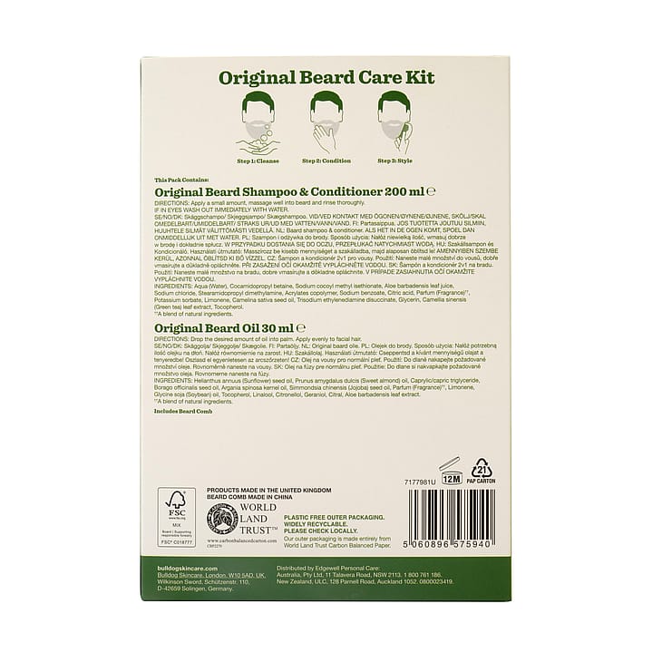 Bulldog Original Body Care Duo. Lahjapakkaus, joka sisältää täydellisen vartalonhoidon miehille