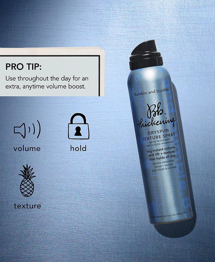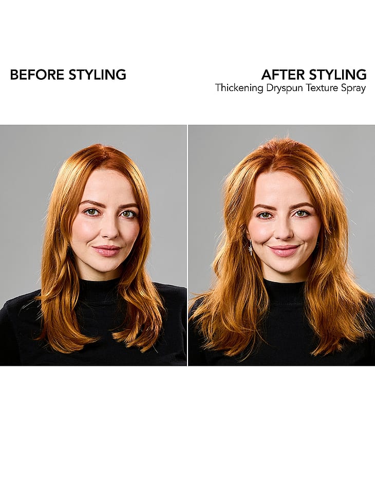 Tämä huomaamaton kuiva viimeistelysuihke antaa 40 % enemmän volyymia käsittelemättömiin hiuksiin verrattuna (ja vaikutus kestää koko päivän) sekä kohottaa ja luo ilmavaa rakennetta.