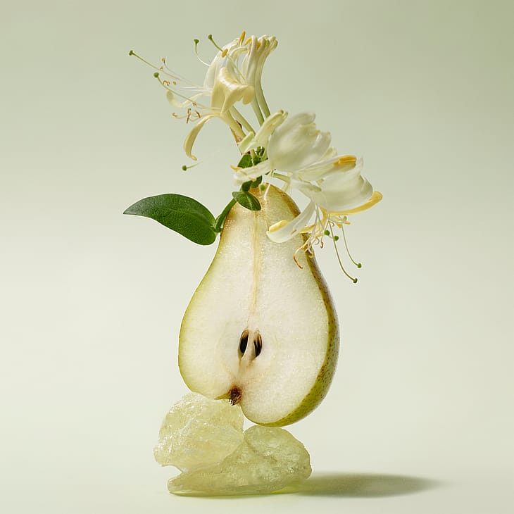 Alkutuoksu: vihreä päärynä, mansikka, mustaherukka, ruusupippuri