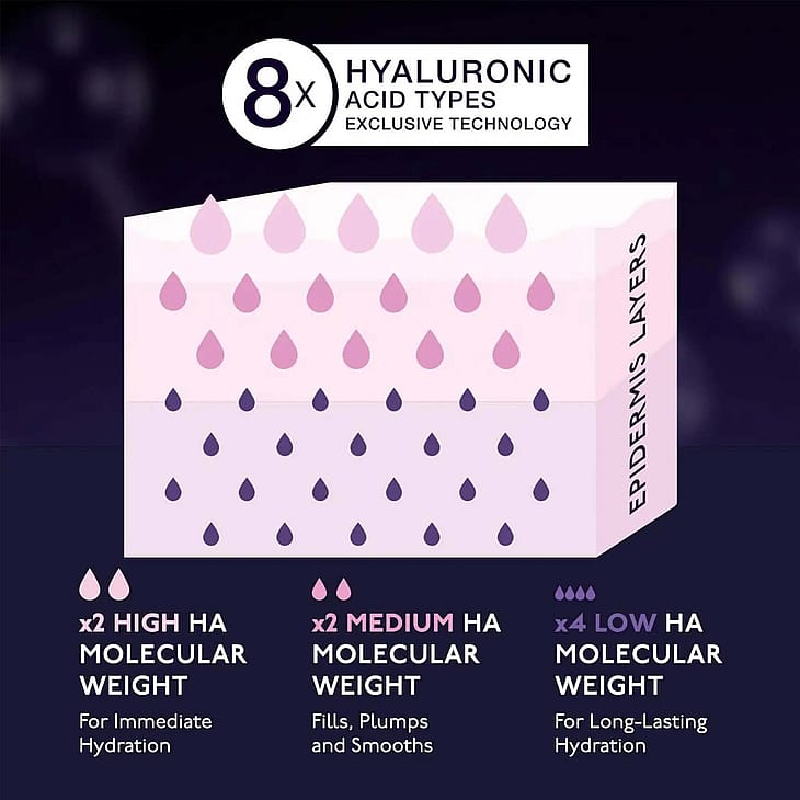 Sen universaali 100 % luonnollinen koostumus ei sisällä ylimääräisiä ainesosia, vain välttämättömiä, korkealaatuista piidioksidia (ECOCERT-sertifioitu) ja tehokasta hyaluronihappoa. Hyaluronihappo kosteuttaa syvältä ja ei kuivata sen uskomattomien vettä sitovien ominaisuuksiensa ansiosta – hyaluronihappo voi sitoa vettä jopa tuhat kertaa oman painonsa verran.