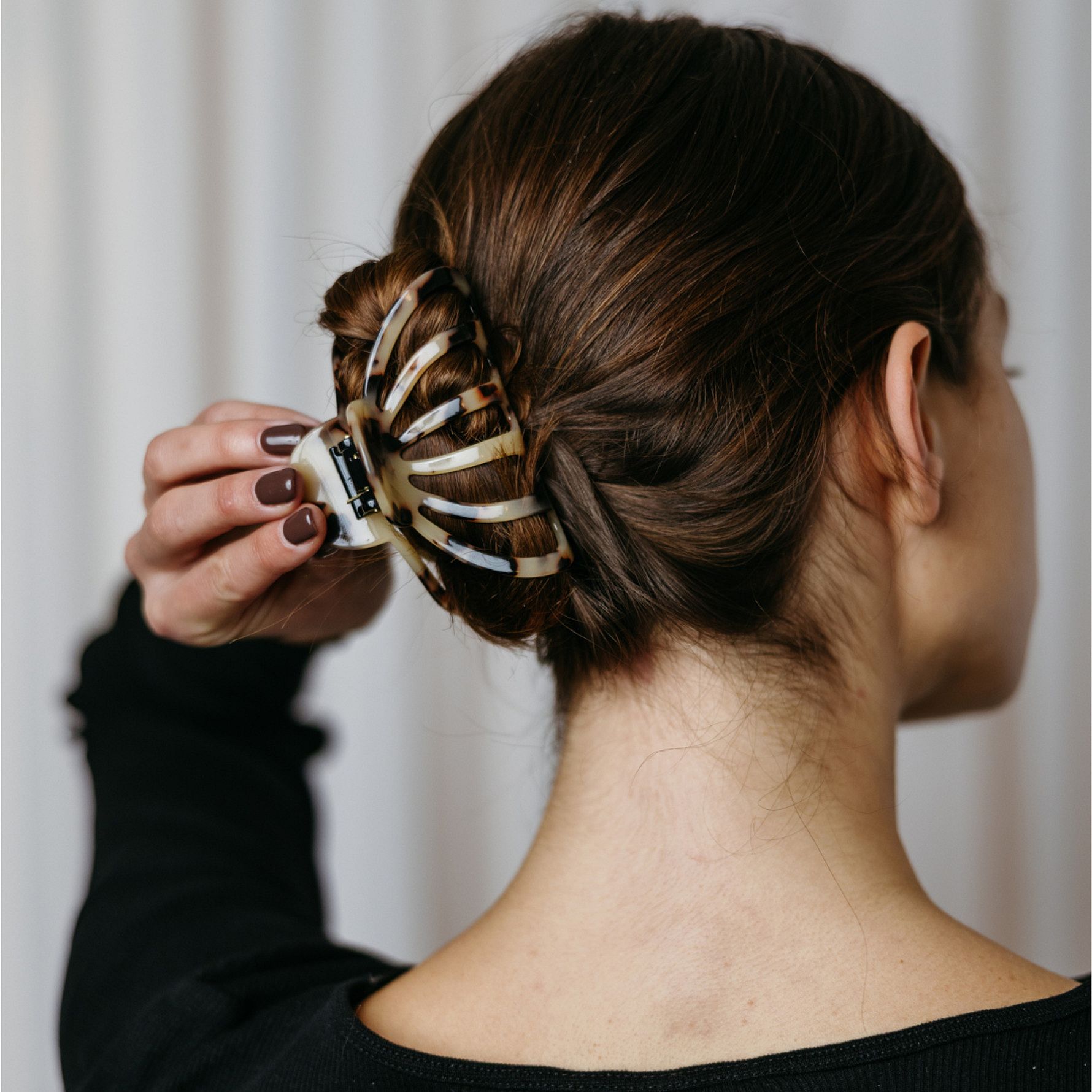 Etsitkö suurta hiusklipsiä, joka pitää koko hiuksesi paikoillaan – myös paksut ja kiharat hiukset? Olivia ByBarbilta on täydellinen yhdistelmä tyyliä, voimaa ja mukavuutta. Sen runsas koko ja vahva ote kokoavat pitkät hiukset helposti ilman vetoa tai kulumista. Valmistettu selluloosa-asetaatista, kestävästä ja ympäristöystävällisestä materiaalista, joka on sekä kevyt ett ä hellävarainen hiuksille. Olivia on suunniteltu antamaan vakaan kampauksen ja elegantin viimeistelyn – joka päivä.