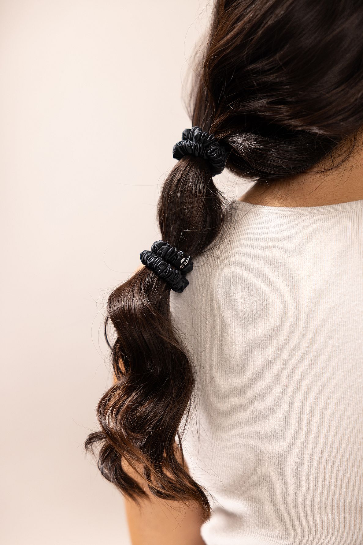 Ohut scrunchie-mallinen hiusnauha, valmistettu 100 % luonnonsilkistä ylellisessä 22 momme -laadussa – mitta, joka kertoo silkin korkeasta tiheydestä, pehmeydestä ja kestävyydestä.