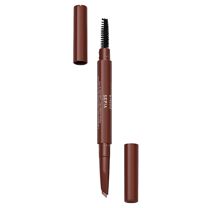 Esittelemme täytettävän All-In-One Brow Pencil -kynän, jonka väri on sekoitettavissa. Vedenkestävä koostumus. Pisaranmuotoinen, täytettävä kärki takaa monipuolisen levityksen: kärki on tarkoitettu muotoiluun, litteä reuna täyttämiseen ja harja stailaukseen. Brow Pencil on muotoiltu tarkasti täydellistä lopputulosta varten. Se on 93% luonnollinen ja 100% vegaaninen. Viisi hillittyä sävyä, jotka sopivat eri ihon sävyille.