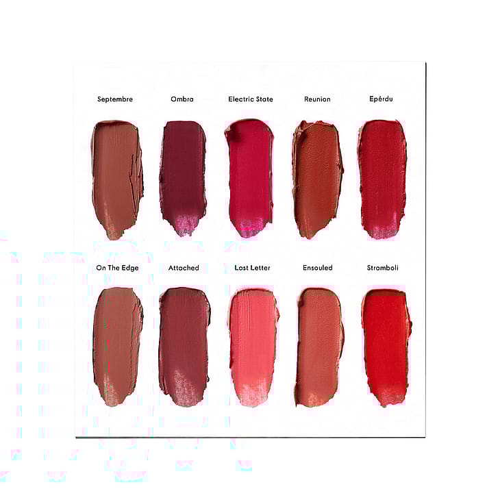 Kattavassa mallistossa on 10 viettelevää sävyä, mukaan lukien kaikille sopiva neutraali Septembre, viileä punainen Éperdu ja ruusupuunruskea Attached.
