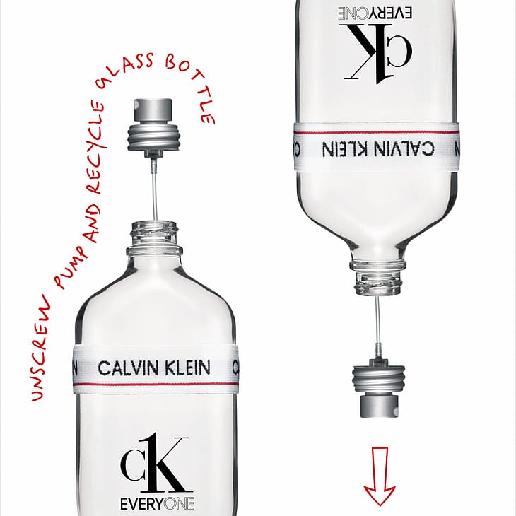 CK Everyone on vegaaninen ja ”minimal waste” -tuote, sillä lasipullo on kierrätettävä ja pahvipakkaus on valmistettu kierrätysmateriaalista.