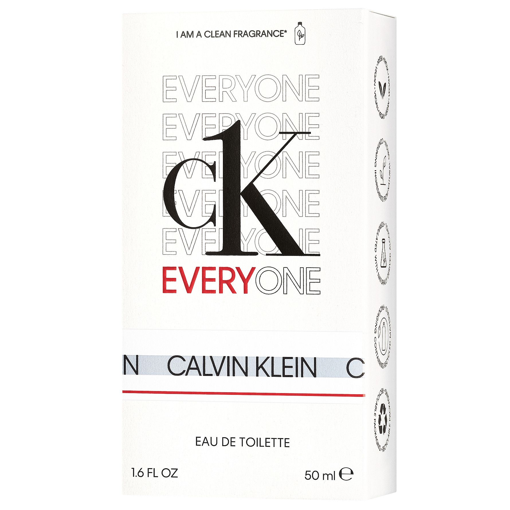 CK ONEn ikoninen perintö oli lähtökohta Calvin Kleinin ensimmäiselle CK EVERYONE -clean-tuoksulle. Vegaaninen, luonnollisesti tuotetusta alkoholista valmistettu tuoksu sisältää luonnollisia ainesosia. Ensituoksussa on ekologista appelsiinia, joka yhdistyy sydäntuoksun teehen ja pohjatuoksun setripuuhun. Yhdessä ne luovat monitahoisen ja piristävän tuoksun. CK EVERYONE mukautuu käyttäjänsä iholla ja luo persoonallisen tuoksun.